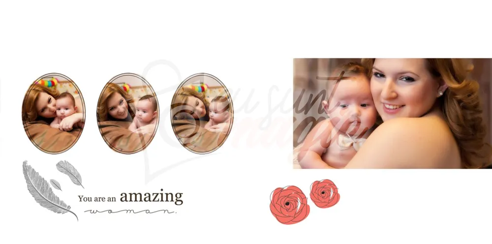- O poveste în 10 Colaje: Cu 10 colaje foto uimitoare, albumul "Mommy's Here" capturează perfect magia și emoțiile din perioada primelor luni de sarcină până la primele zile cu bebelușul. Fiecare colaj este o amintire prețioasă din această perioadă importantă.